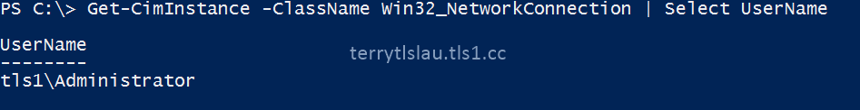 To check the user name by PowerShell, we can perform the following cmdlets.